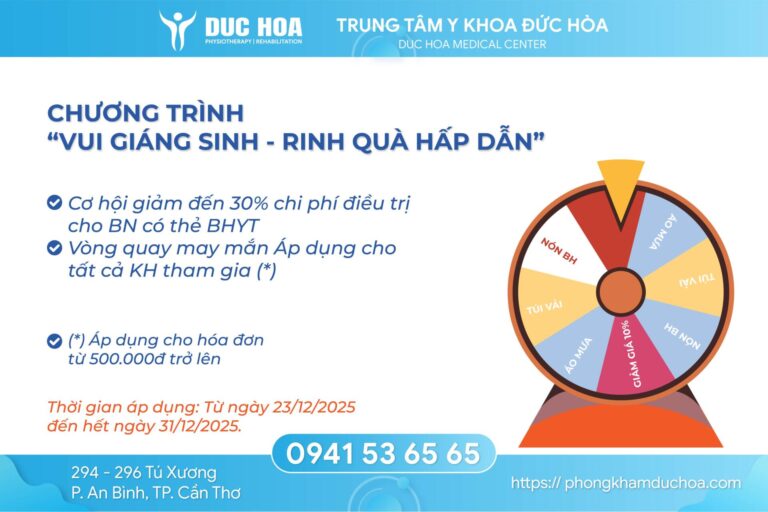 Tất cả Qúy khách hàng đến khám và điều trị tại Trung tâm Y Khoa Đức Hòa từ 23/12/2025 – 31/12/2025 (Có áp dụng điều kiện về hóa đơn, vui lòng liên hệ trực tiếp để được tư vấn chi tiết).