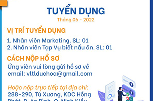 Công ty TNHH DV CSSK ĐỨC HÒA TUYỂN DỤNG THÁNG 06.2022 Các vị trí tuyển dụng: Nhân viên Marketing: Số Lượng: 01 Nhân viên Tạp Vụ biết Nấu Ăn: Số […]