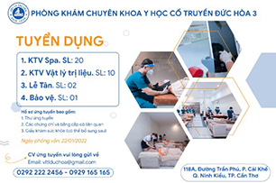 Các vị trí tuyển dụng 01. Lễ tân phòng khám 02. KTV Vật lý trị liệu – Phục hồi chức năng 03. Bác sĩ chuyên khoa Vật lý trị liệu […]